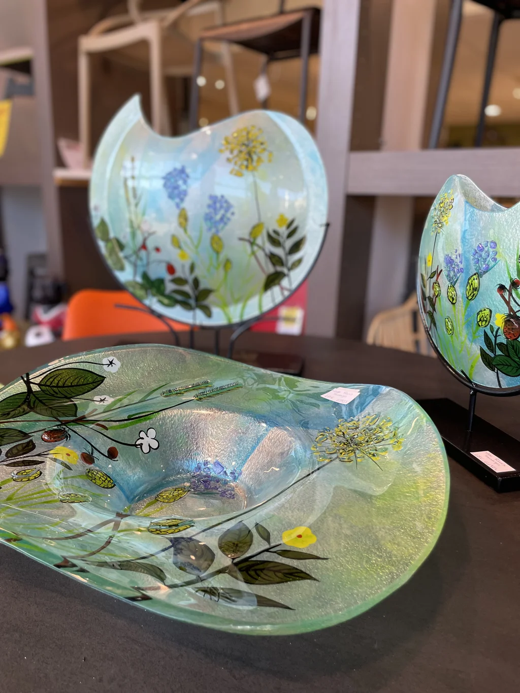 Nous avons aussi une large gamme de chaises qui peuvent être très déco et l’on peut laisser libre-cours à notre imagination avec des chaises de couleurs différentes, des chaises patchwork, chaises en tissu, en PVC, en cuir ou en résine, des chaises transparentes en plexiglas. N’hésitez pas à nous demander conseil et à venir tester les conforts de chacune !